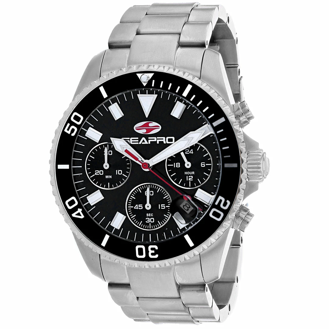 Stainless steel case, Stainless steel bracelet, Black dial, Quartz movement, Scratch resistant mineral, Water resistant up to 20 ATM – 200 meters – 660 feet