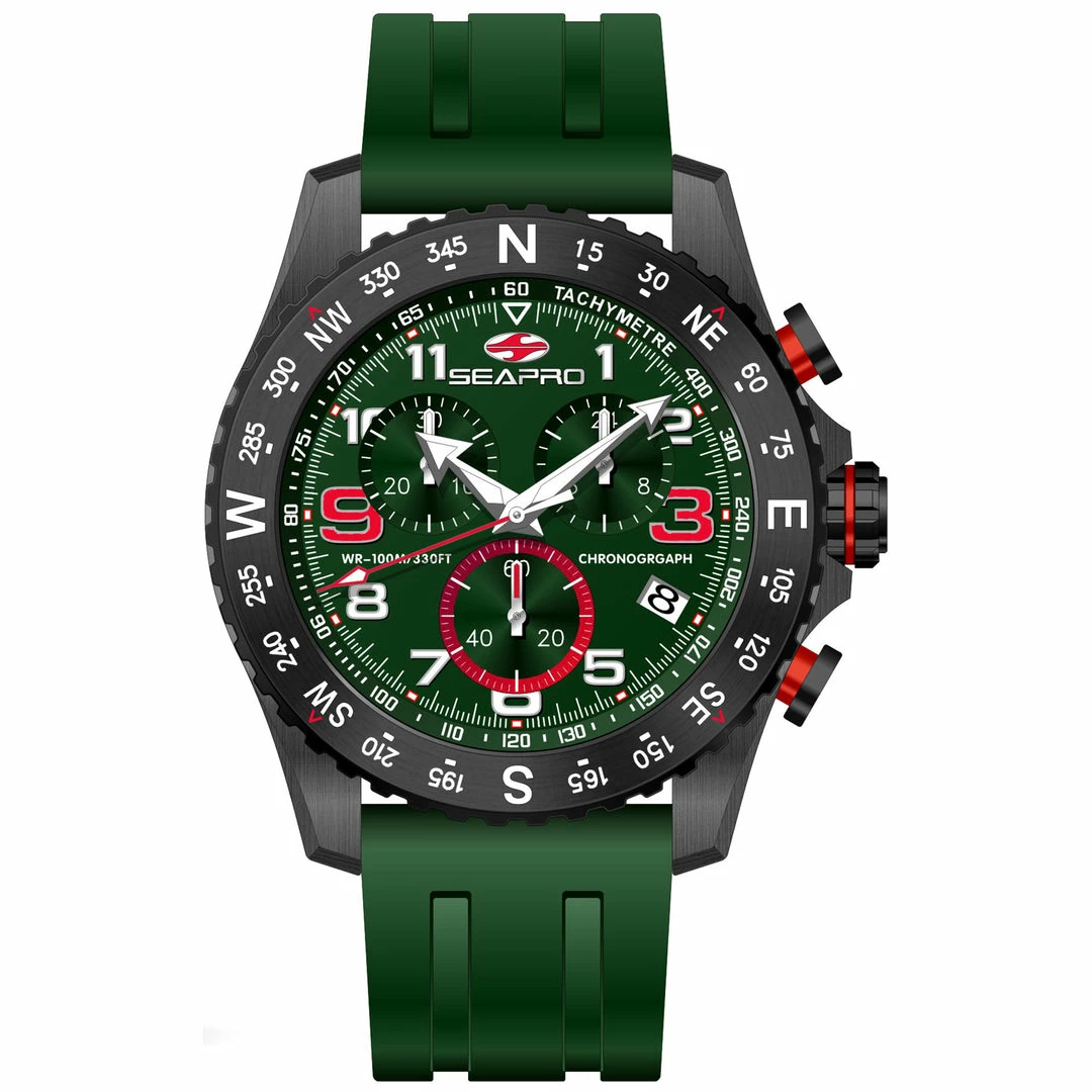 Stainless steel case, Rubber strap, Green dial, Quartz movement, Scratch resistant mineral, Water resistant up to 10 ATM – 100 Meters – 330 feet