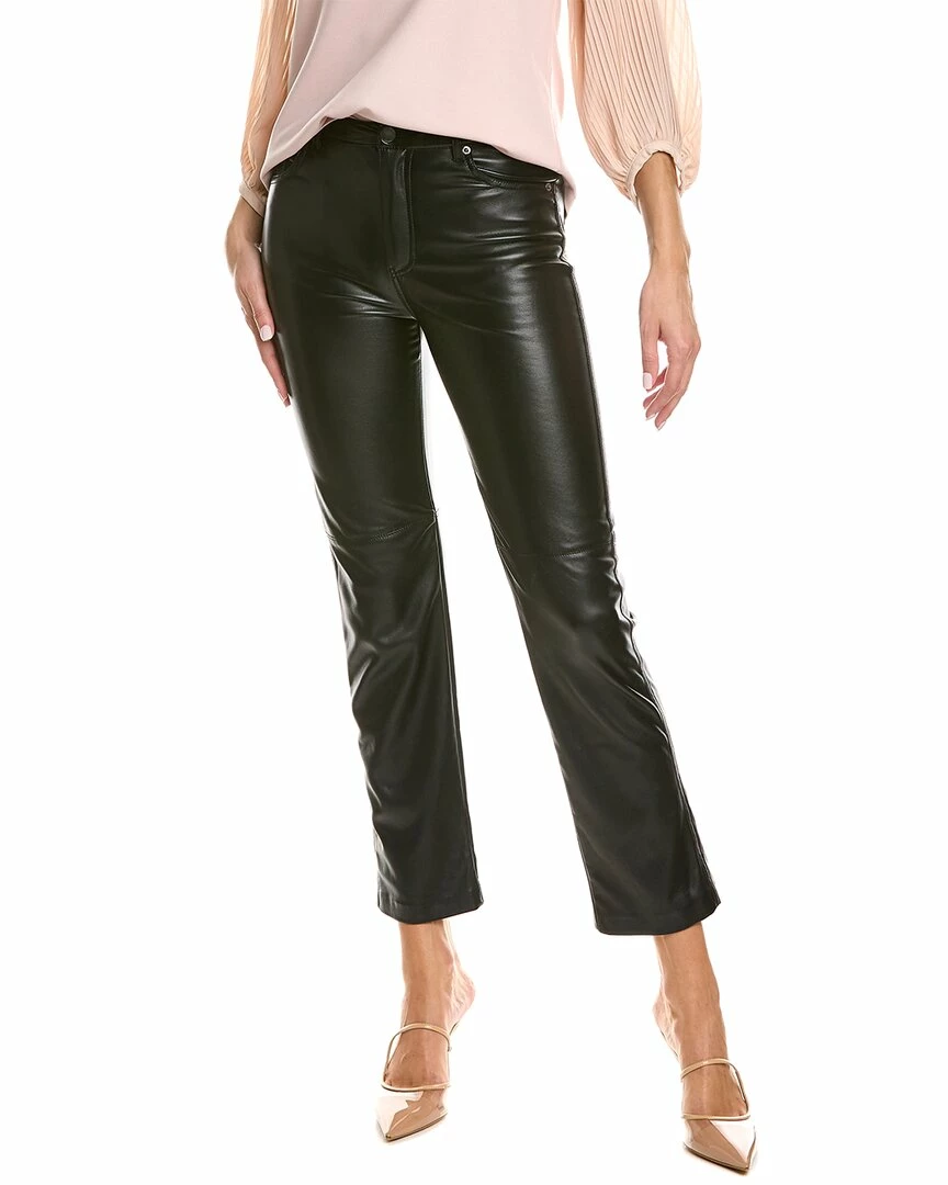 - 5-Pocket Straight Leg Pant In Noir With Faux Leather Construction, Belt Loops And Classic Five-Pocket Styling