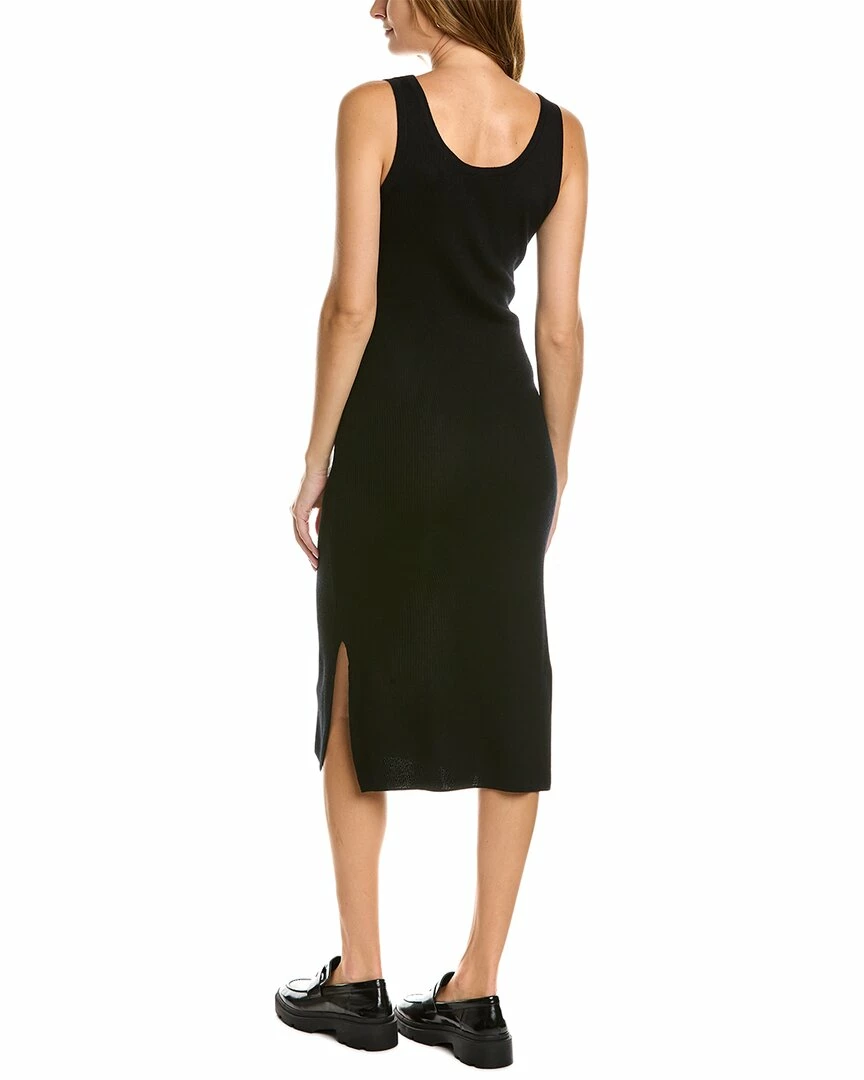 - Deep Scoop Wool Maxi Dress In Noir With Lightweight Rib, Scoop Neck And Side Slits At Hem