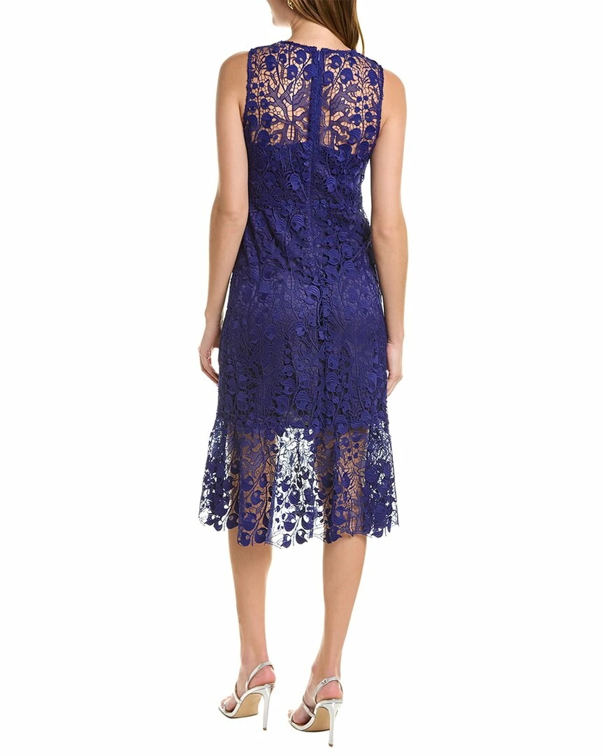 - Lace Midi Dress In Indigo With Lace Overlay And Ruffle Hem
