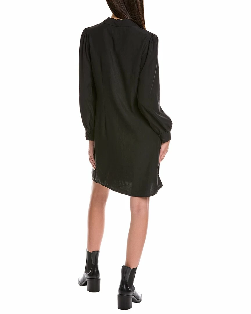 - Lace-Up Collar Shift Dress In Noir With Shirred Balloon Sleeves