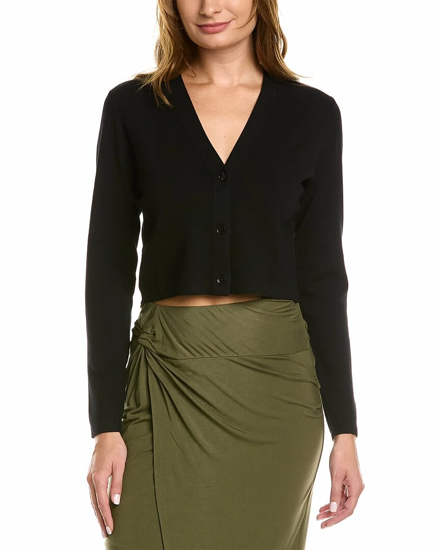 - Molly Sweater In Black With Stretch Fabric, V-Neck And Cropped Hem